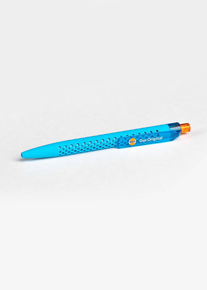 bringt das Dreidimensionale durch die neue Oberfläche zur Geltung. Die perforierte Wabenstruktur gibt den Blick auf die innenliegende Mine frei und schafft eine Art Luftkissen, auf dem das Schreibgerät in der Hand schwebt.