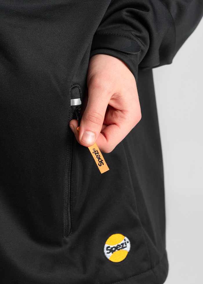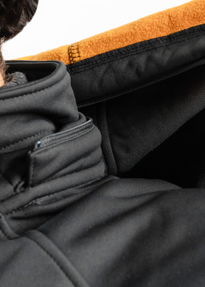 Abnehmbare Kapuze und Kinnschutz am Reißverschluss